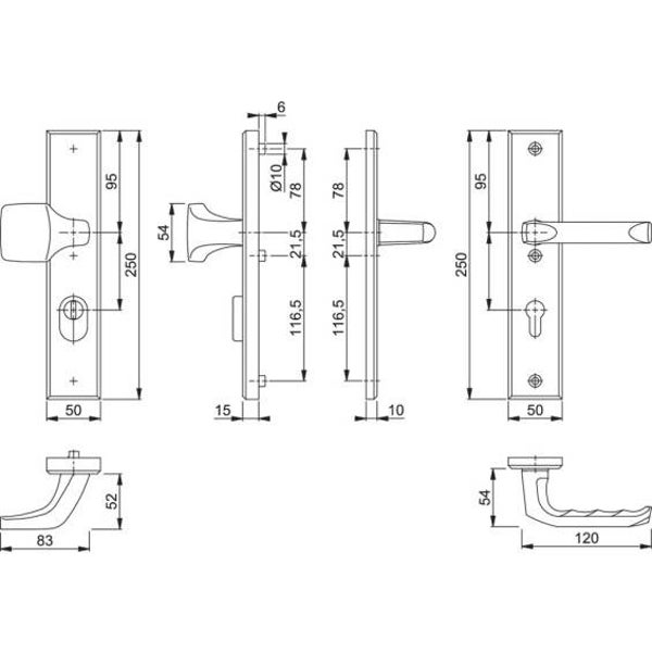 Incl. zichtbare bevestiging met 3 x M6 kruiskop bouten en deurkruk-gatdelen.