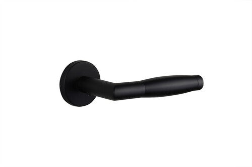 Zwarte deurklinken Ascoli op een rond rozet. Deze zijn gemaakt van roestvast staal (RVS) en is voorzien van een zwarte poedercoating.