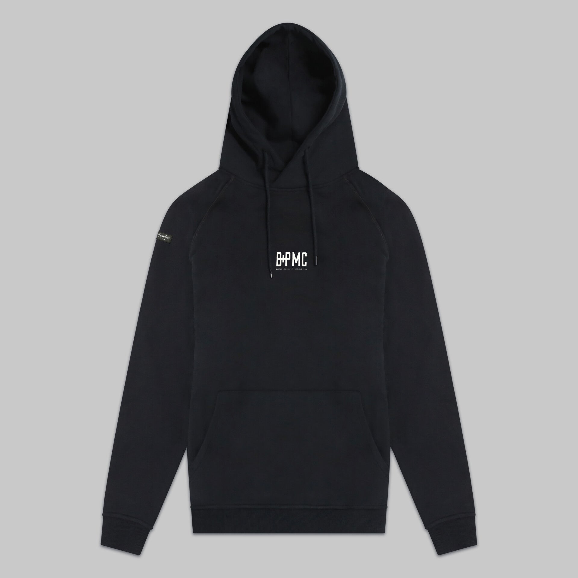 Ga voor comfort en stijl met deze zwarte hoodie, gemaakt van hoogwaardig, zwaar katoenen terry (480 GSM). Het relaxte ontwerp met semi-verlaagde schouders zorgt voor een comfortabele en eigentijdse pasvorm. De hoodie is voorzien van een opvallend B+P MC logo en een siliconen Buster + Punch patch, die de unieke identiteit van het merk benadrukken.